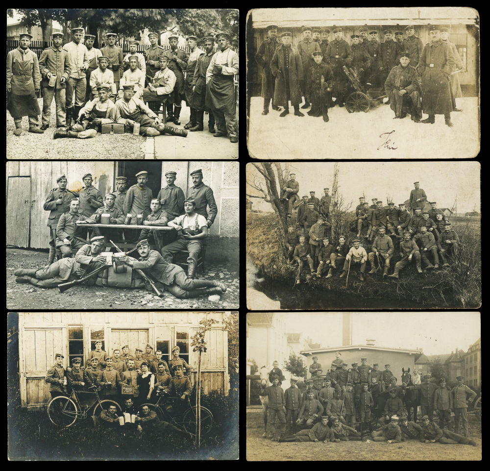 6 GERMAN SOLDIER POSTCARDS 1915-1918, real photo cards showing various unit groups, retails $120 US ($175 CDN), F-VF est ($35+ US) (Image)