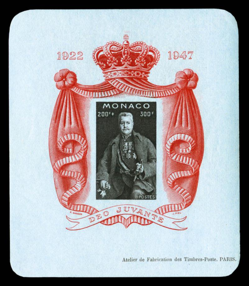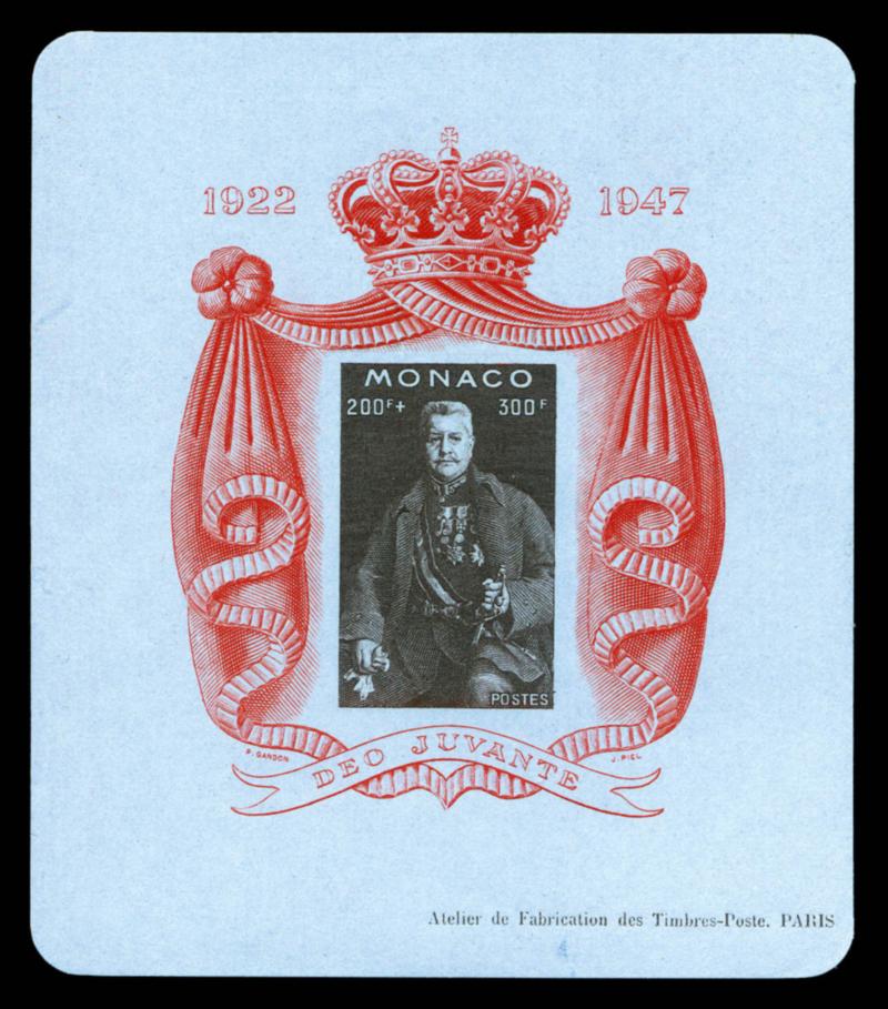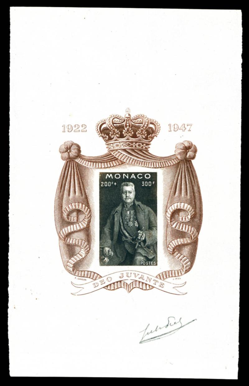 N°2, 200f +300f 25 ans du règne du prince Louis: épreuve sur feuillet en brun et noir signée. SUP. R. (certificat) Qualité: (*) (Image)