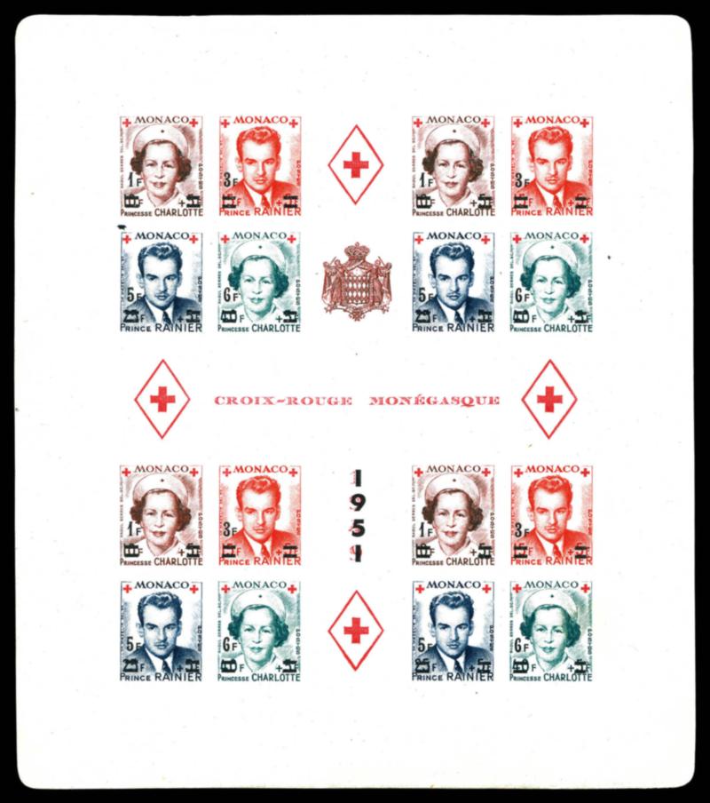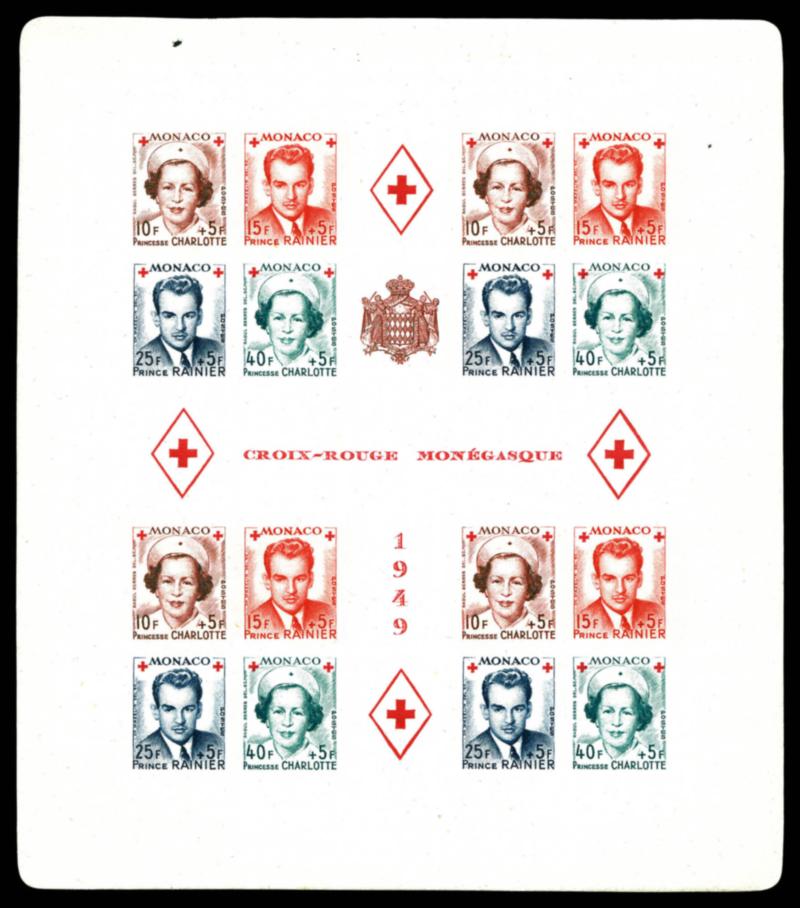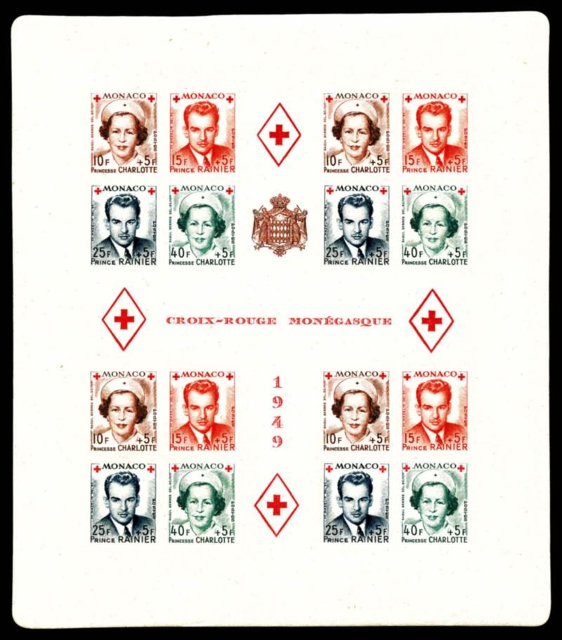 N°4A/B, Croix rouge monégasque de 1949 les 2 feuillets surchargés dentelé et non dentelé, B Qualité: ** Cote: 1060 euros (Image)