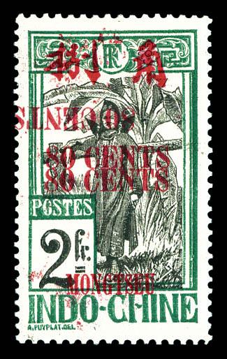 N°65a, 80c sur 2f vert: Triple surcharge dont une renversée. SUP. R.R. (signé Scheller/certificat) Qualité: * Cote: 790 euros (Image)