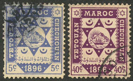 Tetuan to Chechuan, Yvert 139 and 143, 1896 5c. blue and 40c. violet, used, VF (Image)