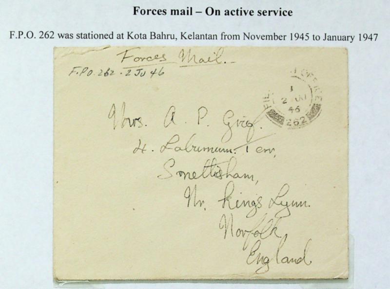 Malaya 1946 Postage Free OAS Forces Mail FPO-262 cover from Kota Bahru, Kelantan to England (Image)