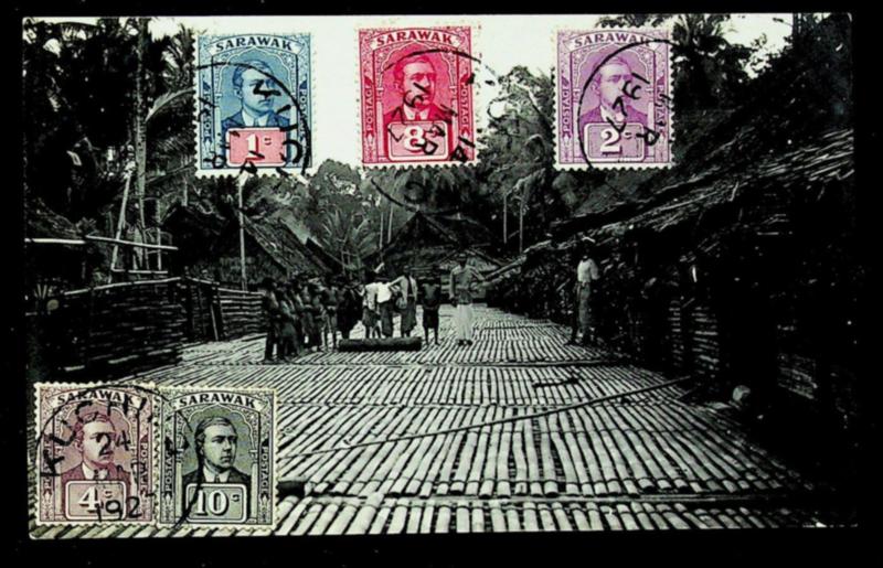 Malaya Sarawak 1927 Sir Charles Brooke 5v on PPC from Kuching to Paris France (Image)
