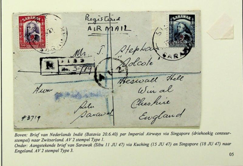 Malaya Sarawak Crown Colony 1947 2v on Regd airmail cover from Sibu via Kuching/ Singapore to England w/ circular "AV2" cachet in black (Image)
