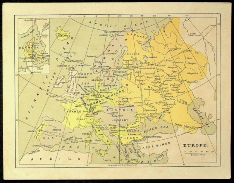 Europe GB, France, Austria, Switzerland, Germany, Russia etc. old original Map Print (Image)