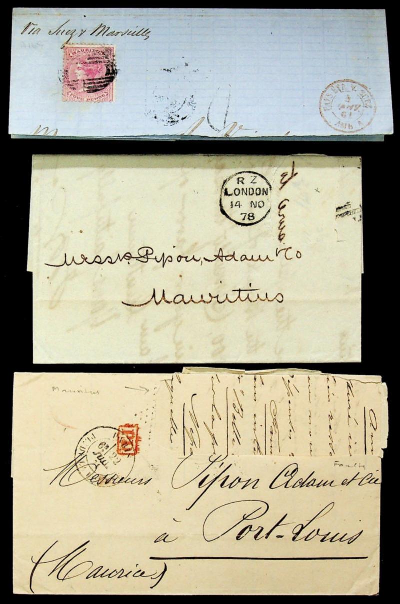 Mauritius 1860-78 3 covers, 1 sent to France & another one incoming from London England (Image)