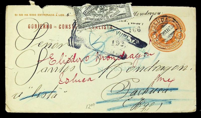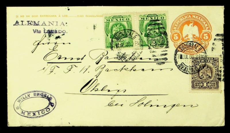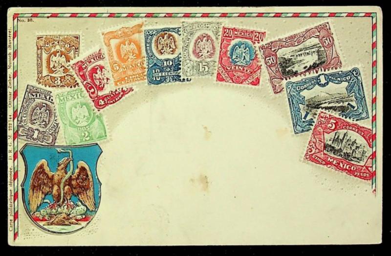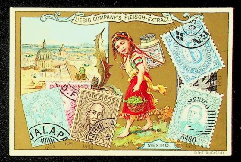 Mexico Liebig Company's Extract of Meat advertising PPC depicting used stamps (Image)