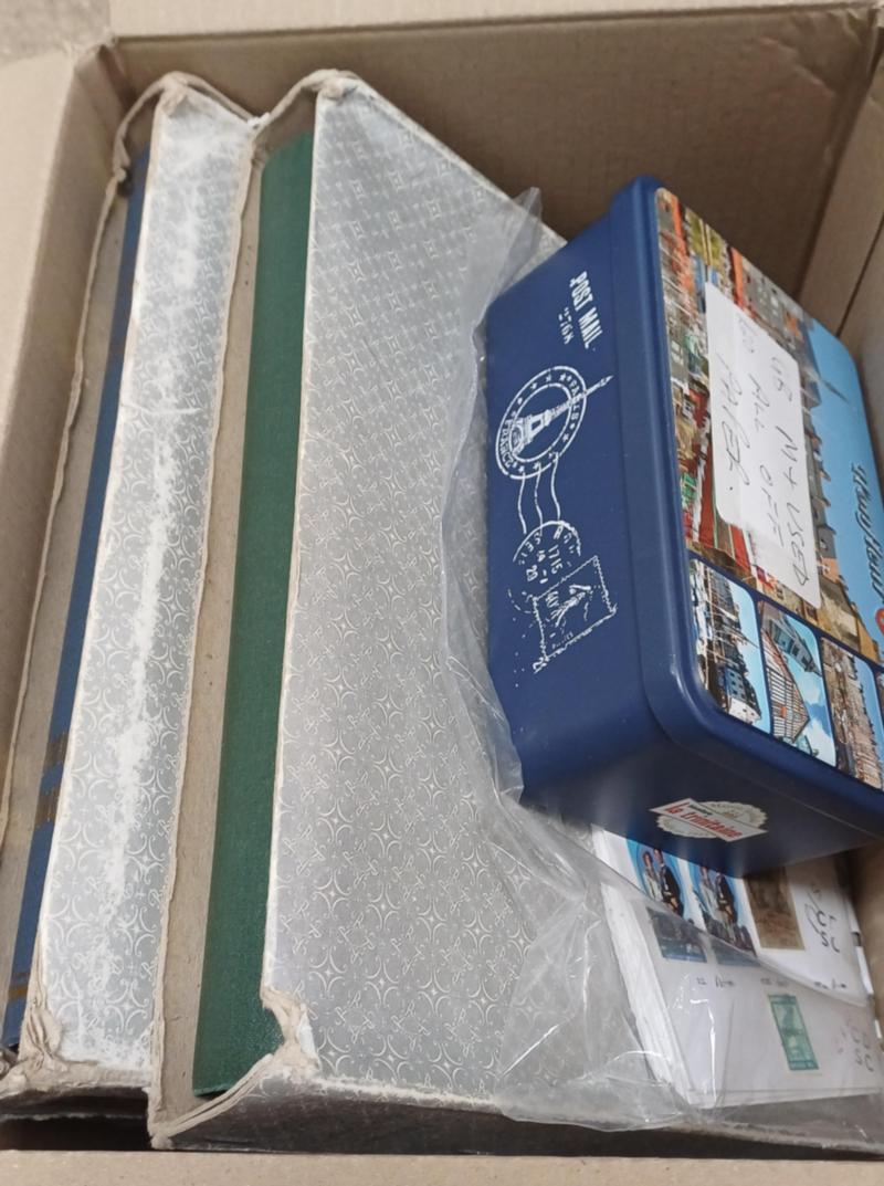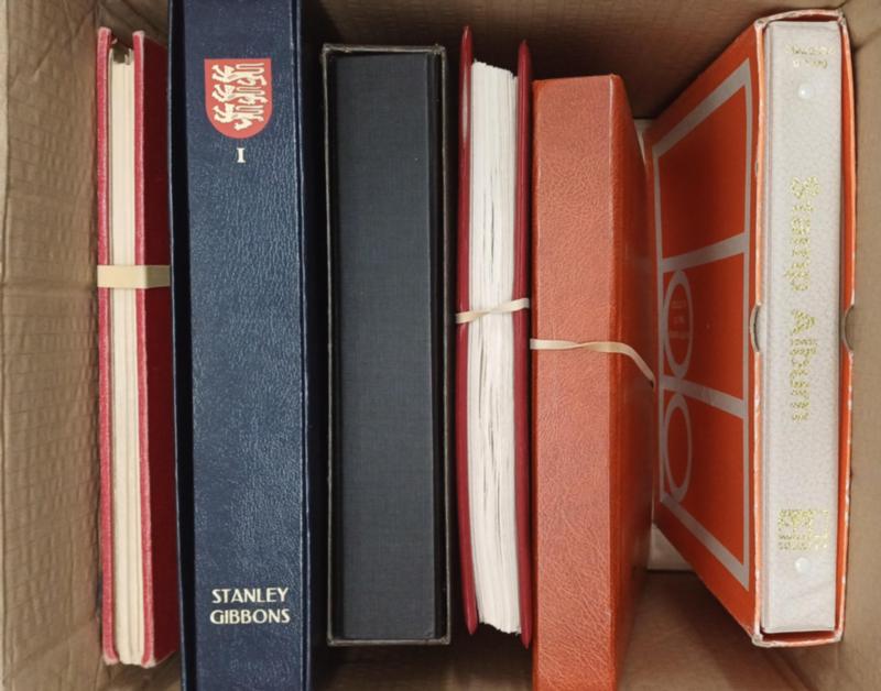 Misc. Lots in Boxes COMMONWEALTH & FOREIGN Q.V. to Q.E.II Commem. & Defin. mint & used coll. incl. GREAT BRITAIN used in a part-filled Windsor album with Q.V. to £1 and K.G.V to 10s (faults), JERSEY & GUERNSEY to late 1980's mint sets, MS and Postage Dues in an SG Davo album, various countries in a well filled SG Wyon and Collecta albums plus a few extras in a large and small stockbook. Mixed condition in a medium sized box. (Ref: 254/1) (Image)