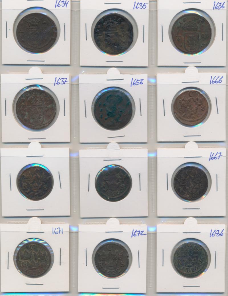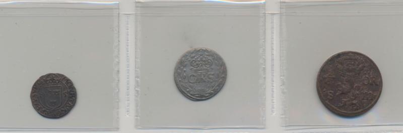 Sweden, 3 coins in silver and copper, 1585-1671, mixed quality. (Image1)