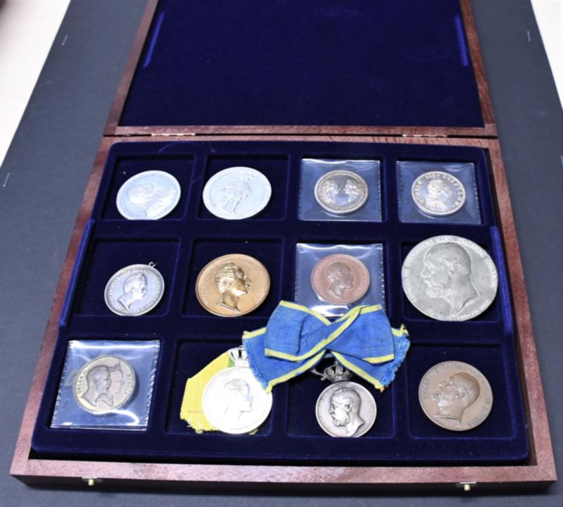 Sweden, 1 box with 23 medals in silver and bronze, GIIA, Gustav III, Oscar I, Oscar II, Gustav V and Gustav VI Adolf, mixed quality. (Image1)