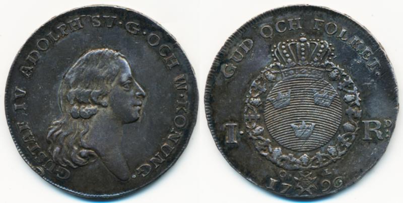Sweden, Gustav IV Adolf SM 25 1 riksdaler 1796 29,20 g, SMB 22. dark and smooth patina. VF-XF (Image1)