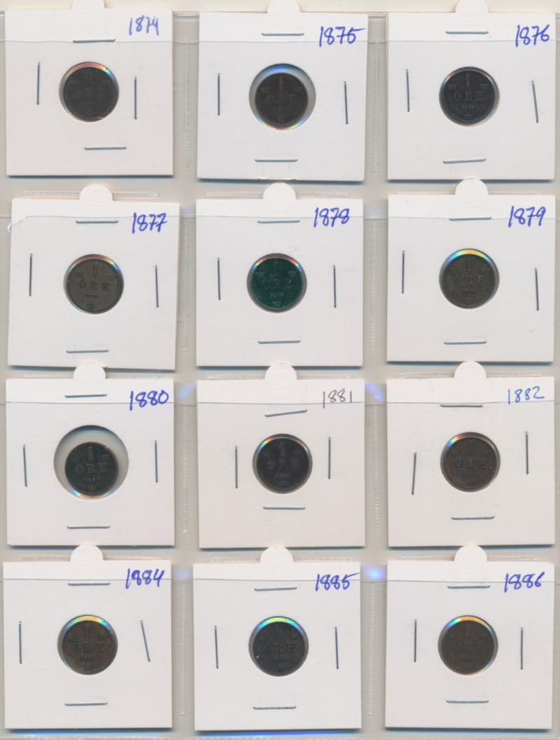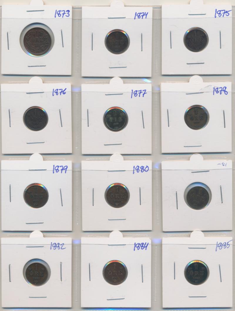 Sweden, Oskar II 1 album with 73 coins in silver and copper, 1873-1907, mixed quality. (Image1)
