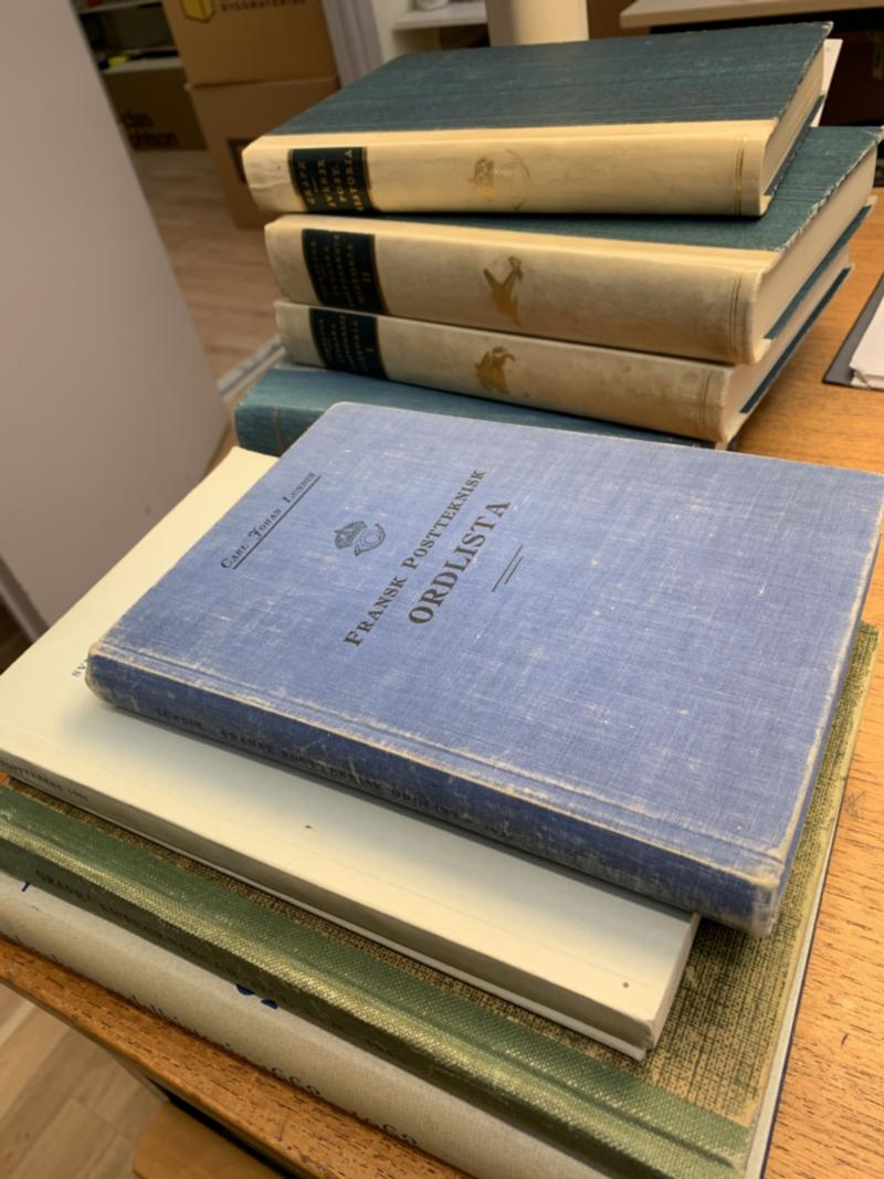 Sweden, Posthistorically interesting literature, e.g. Forsell: Svenska postverkets historia (volume 1-1), Grape: Svensk posthistoria, Grape: Postkontor och postmästare, Fransk postordlista, Riksbankens sedelhistoria 1668-1968 etc. Eight volumes in total. Approx. 10 kg. (Image1)
