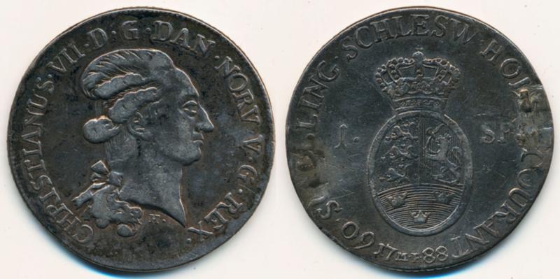 Denmark, Slesvig-Holstein, Christian VII Sieg 45, 3-H39c 1 speciedaler 1788 28,37 g, has been mounted. 1? (Image1)