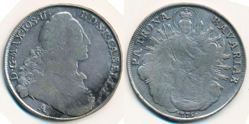 Germany, Bavaria, KM 519, 2 1 thaler 1775 27,66 g. A. VG-F (Image1)