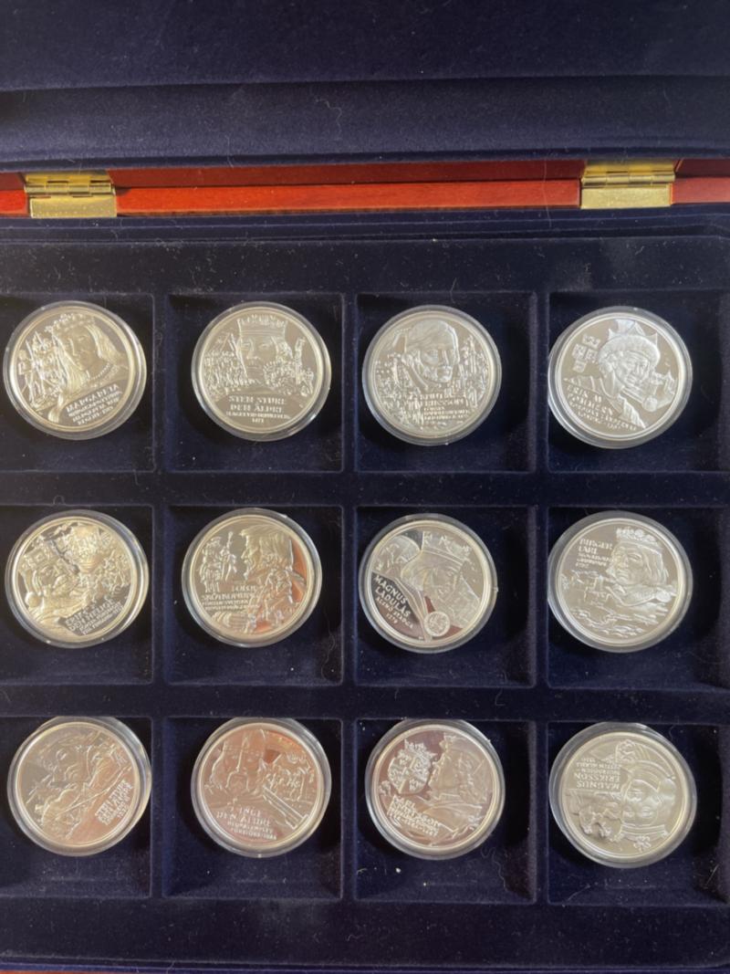 Sweden, Comemmorative medals "Swedish regents" complete set of 36 medals in sterling silver. 27 g each and 972 g total. Certificates included. UNC 3 more images are available at www.philea.se (Image1)