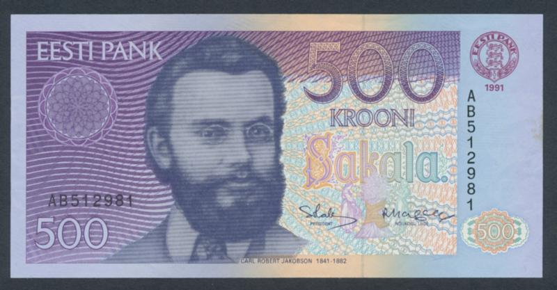 Estonia, KM 75 500 krooni 1991 No: AB 512981. UNC 1 more image is available at www.philea.se. (Image1)