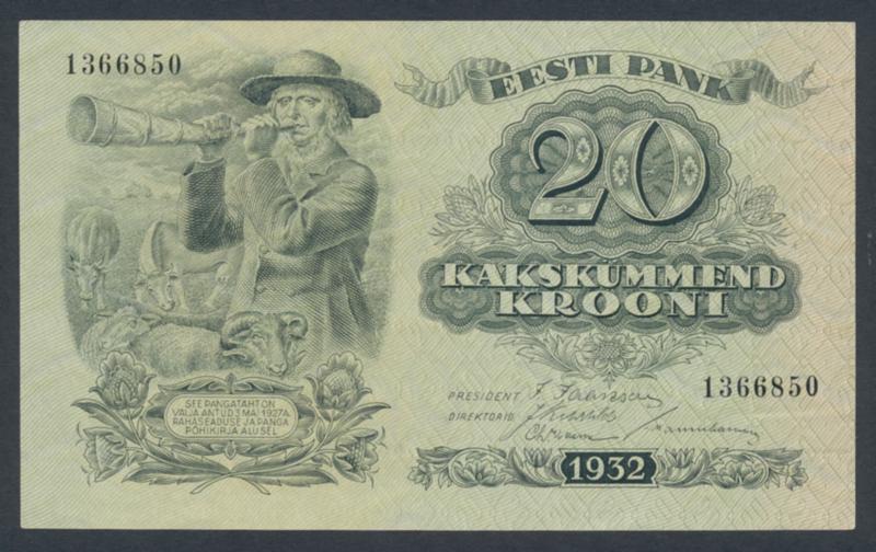 Estonia, KM 64 20 krooni 1932 No: 1366850. UNC 1 more image is available at www.philea.se. (Image1)