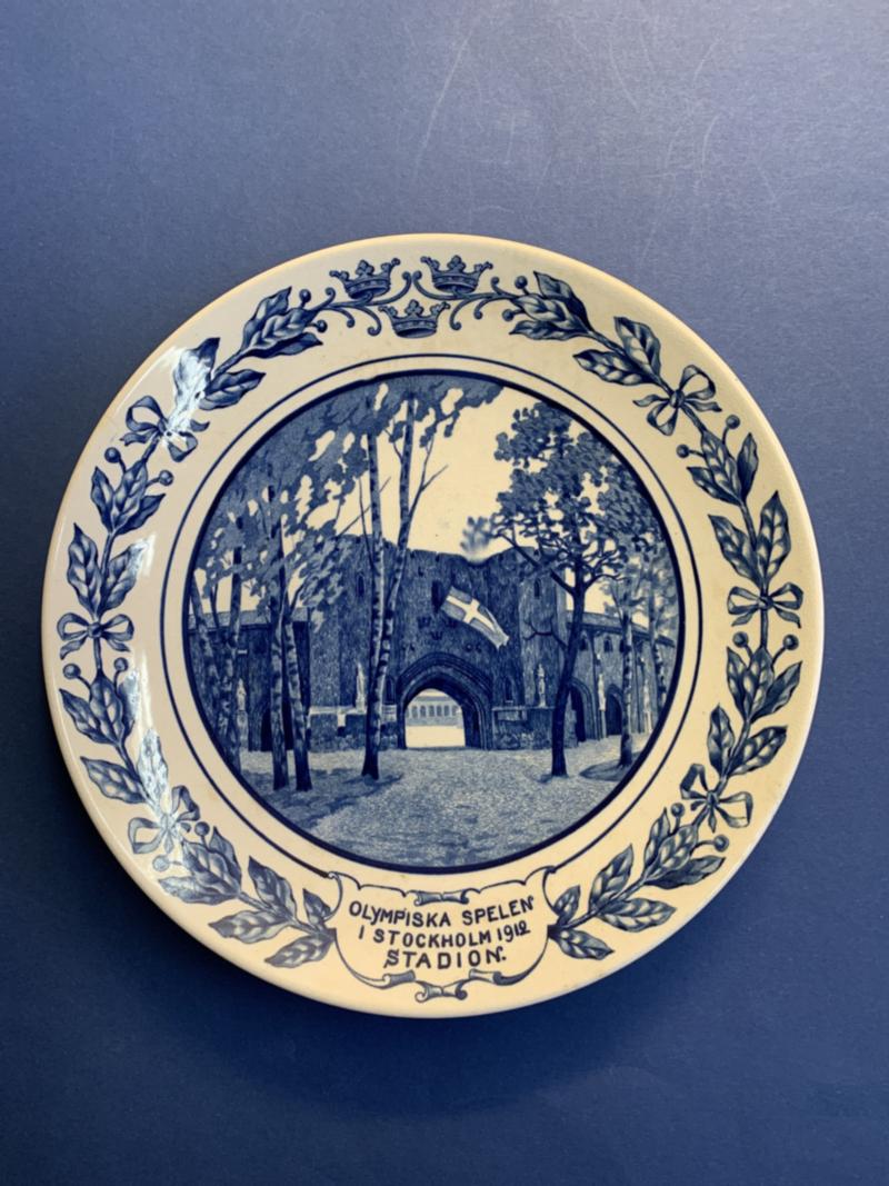 Sweden, "OLYMPISKA SPELEN I STOCKHOLM 1912 STADION". Plate (23,2 cm), Rörstrand. Scarce and in high demand! 1 more image is available at www.philea.se. (Image1)