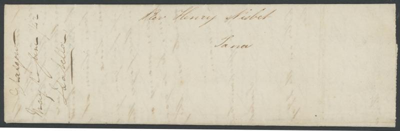 1842 lengthy Scottish social entire headed "Hutchesontown 30 May 1842" & signed "Your affectionate Sister/Isabella Nisbet" with post scriptum "I finish this letter on the 29 of June at Rutherglen/this is number 2", to "Rev Henry Nisbet/Tana" carried per favor with no postal markings but docketed on arrival "Glasgow/May to June 42/Isabella", remarkably fine: superior to the four 'Santo' 1841-42 unstamped entires that sold for an average of $980 each.