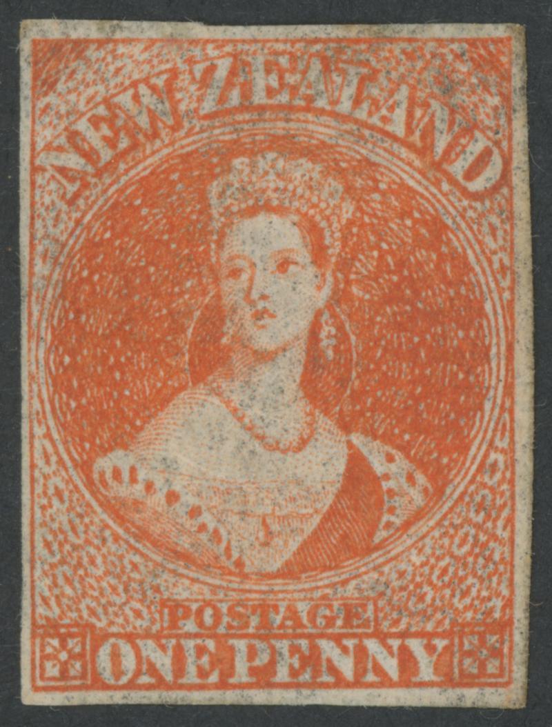 1862-63 Pelure Paper Imperf 1d orange-vermilion SG 81, full rich colour with minor discolouration at the top, close even margins, Cat £12,000. BPA Certificate (1979) states "large-part original gum", with which we are not comfortable. A rare stamp, of which very few unused examples are recorded. Joseph Hackmey's two very fine examples sold for US$16,800 (2009) & US$8700 (2010) respectively