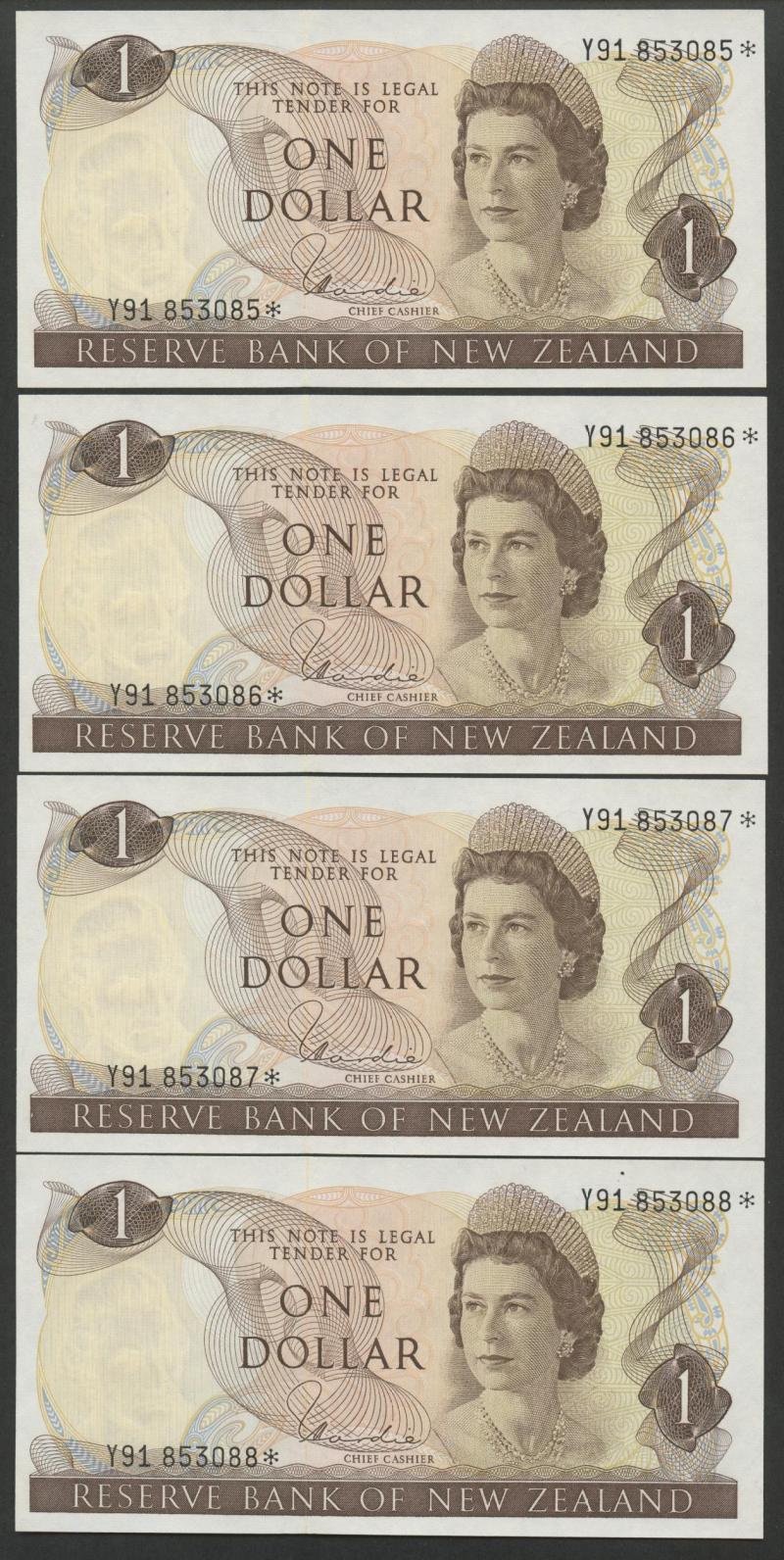 1968 $1 Hardie P163b Star Replacement consecutive run of ten serials 'Y91 853085 *'-'094 *', Uncirculated, Cat NZ$500.