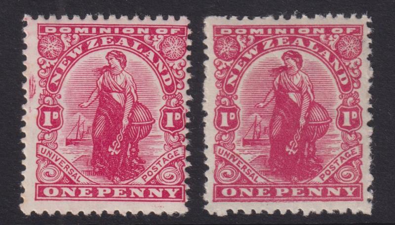1900-7 seln (excl ½d green Mt Cook) on 6 s/b pages. 1d Terraces x 73, 1½d Boer War x 32 (incl brown shade x 1 & p14 x 2), 2d Pembroke purple x 90, 4d Taupo x 43 (incl CP EV12a R1/3 variety, p14 wmk reversed x 6) & 6d Kiwi red x 130 lovely range of shades (incl CP EV14b R1/1 variety, p11 Cowan imperf at top x 2 & proofs postally used x 2). Identified by CP Nos. Cat simpl $3300+. GU/FU. (Image)
