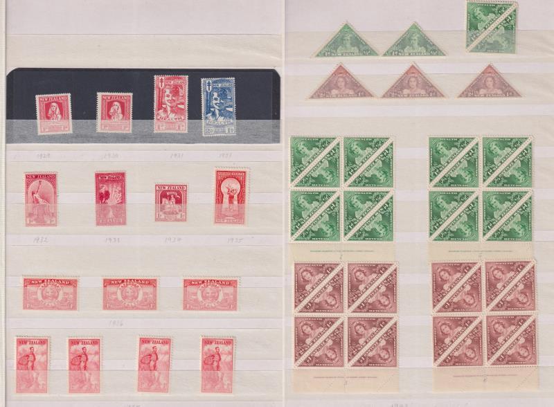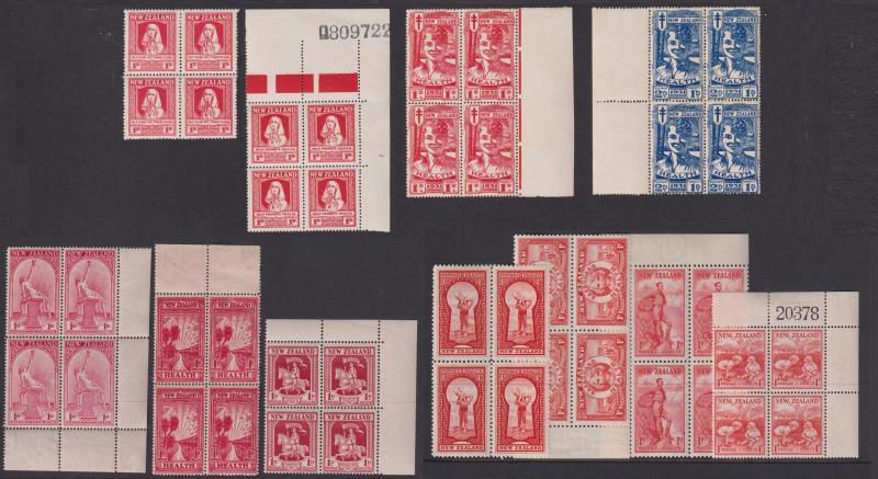 1931 Red & Blue Boys: MUH 1 set plus extra Blue; Mint 32 sets plus 3 extra Blue; Unused no gum 5 sets plus 2 extra Red; minor faults (mint) 13 sets plus 2 extra Red. A rare opportunity to acquire such a large holding of these iconic NZ stamps. Cat $25,000. (Image)