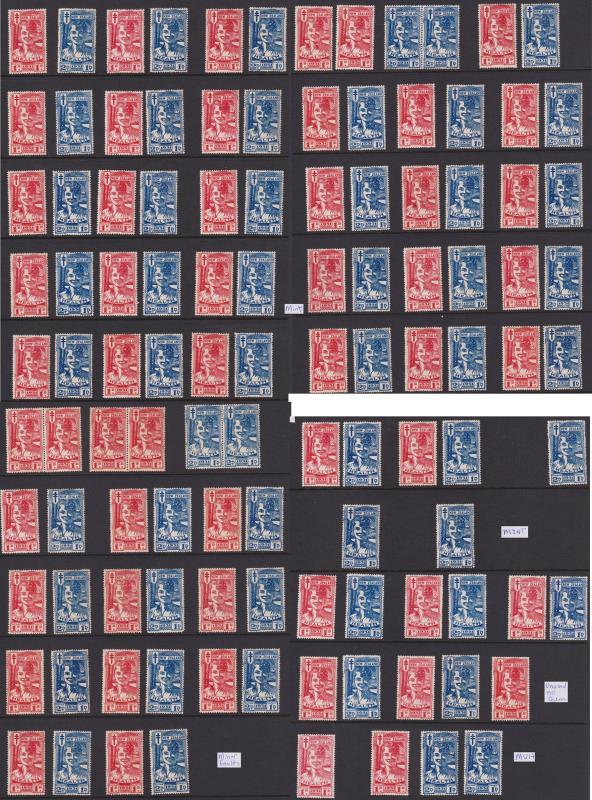 1931 Red & Blue Boys: 115 used sets plus 9 extra Red (mostly FU). Also 11 sets plus 9 extra Blue minor faults. A similar rare opportunity to acquire a large holding of these iconic NZ stamps. Jury cat $60,000+. (Image)
