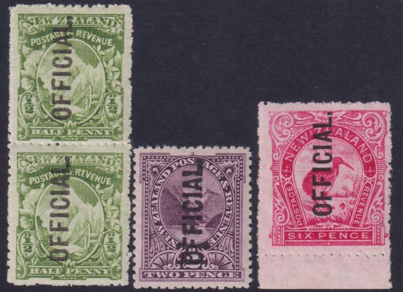 1907 ½d (vert pair), 2d, 6d (original design) Pictorials "later" set of 3. Jury cat $1850. MUH. (Image)