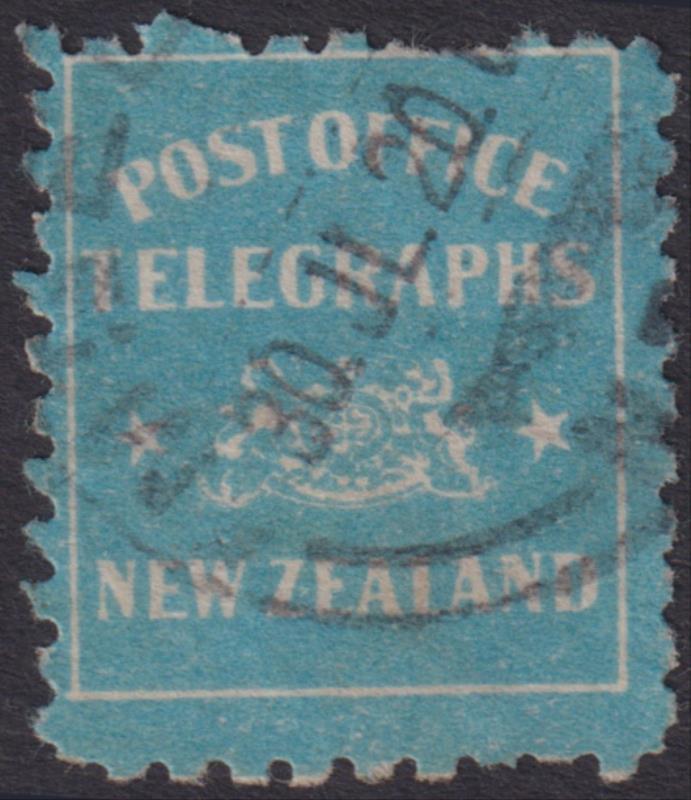 1899 1/- Great Barrier Isl Special Post blue-green, a couple of small ink blots. Jury cat $300. Appears unused. (Image)