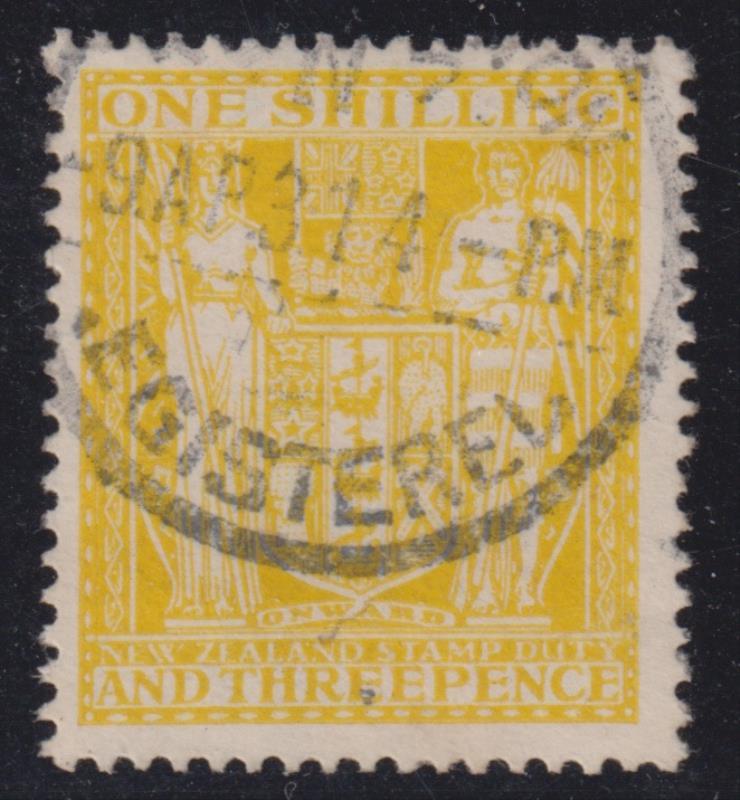 1931 1/3d lemon, clear part "(WELLING)TON 31 AP 31 REGISTERED" cds. FU. Note: this predates the earliest known recorded use (17 AP 31) by Thackery, of not only this stamp but any NZ Arms stamp. (Image)