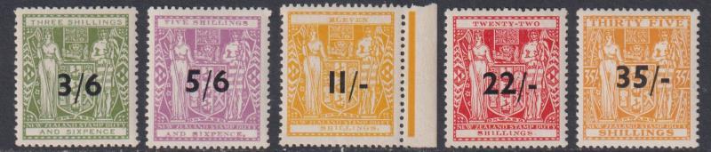 1939 3/6d to 35/- ovpts set (3/6d sans serif only). Jury cat $2475. Mint (3/6d, 5/6d & 11/- MUH). (Image)