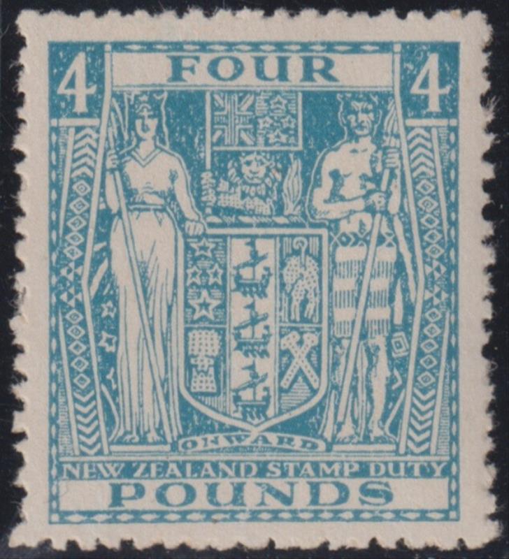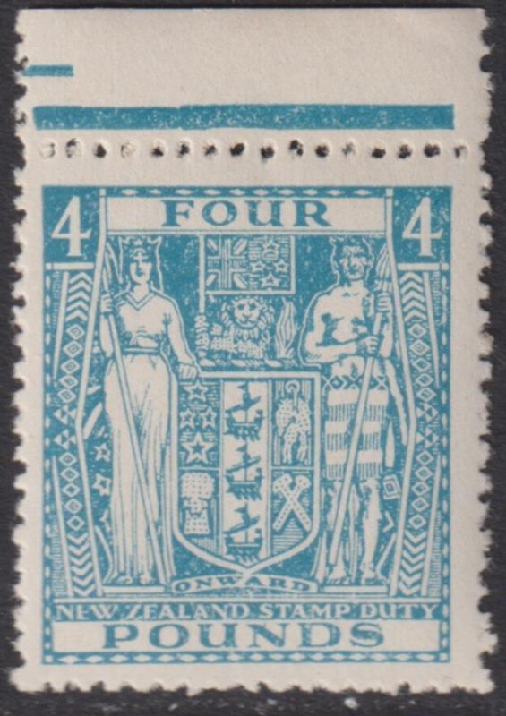 1952 £4 light blue, with top selvedge, WT mult invtd wmk paper. CP Z50b. Cat $600. MUH. (Image)
