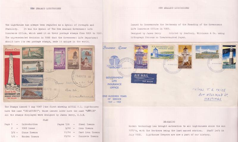 Marlborough postmarks colln on annotated pages. Well picked over & very untidy appearance. Good range of maybe 50 offices incl covers, stamps, stamps on piece etc. Many 100s items. Also small colln Lighthouses - stamps & pmks. All ex Elspeth Wells. (Image)