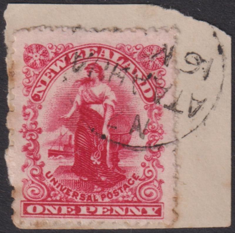 Ataahua (CH 1897-1964) good-fine large part strike of A-type cds (name complete) 16 M(?) (??) on 1d Universal on piece. (Image)