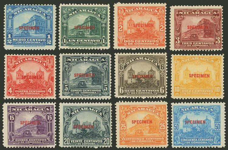 Yvert 364/375, 1914 Cathedral of Leon and Congress, complete set of 12 values overprinted SPECIMEN, MNH, excellent quality! (Image)