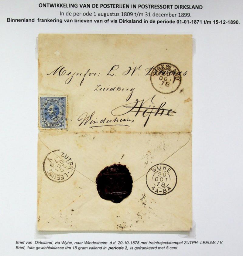Netherlands 1878 King William III 5c on opened out cover from Dirksland via Wijhe/ TPO to Windesheim (Image)