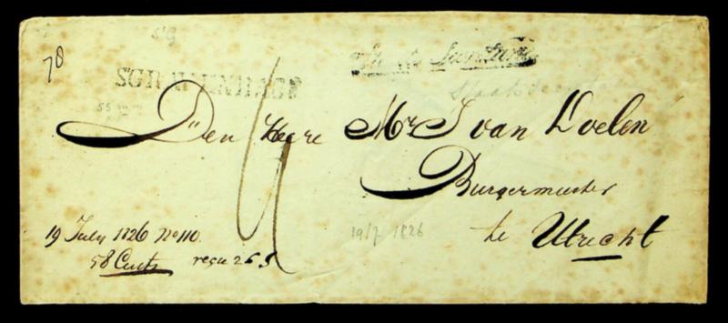Netherlands 1826 prestamp cover with charge markings from s-Gravenhage to Utrecht (Image)