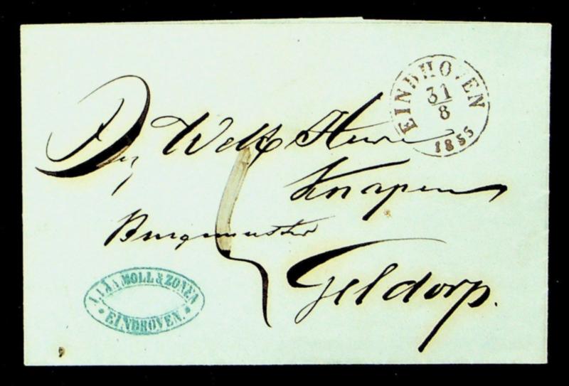 Netherlands 1855 stampless cover with charge markings from Eindhoven to Geldorp (Image)
