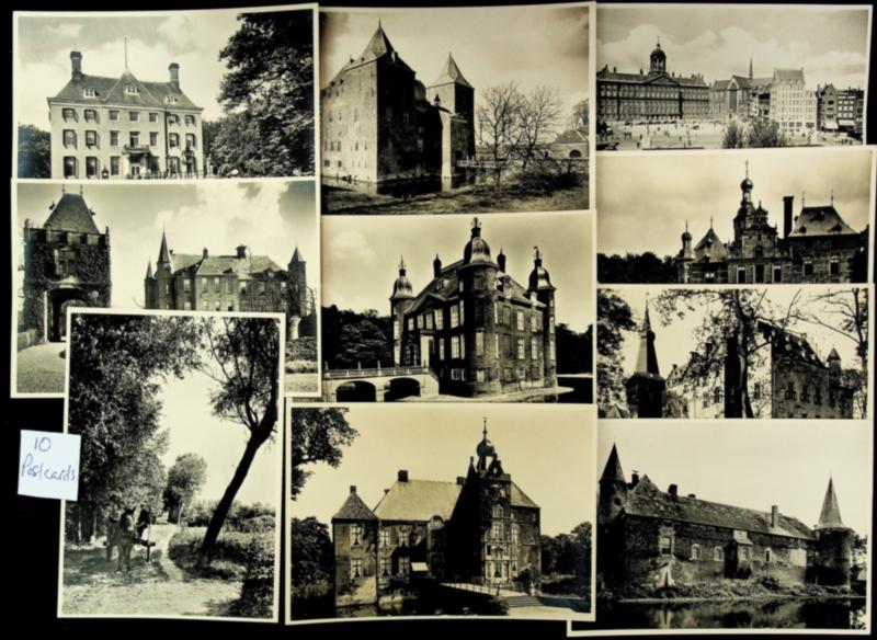 Netherlands architecture & panoramas of different cities & towns, Wilhelmina 5c s/c on 7½c, 10 unused black & white PPC (Image)
