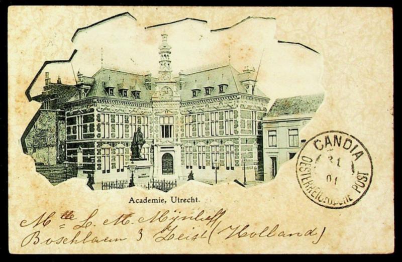 Netherlands Levant 1901 Utrecht Academy PPC w/ 2½c from Zeist via "Canea, Oesterreichische Post" to Creta Turkey (Image)