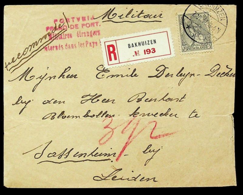 Netherlands 1915 Wilhelmina 10c on Regd cover from Bakhuizen to Sassenheim (Image)