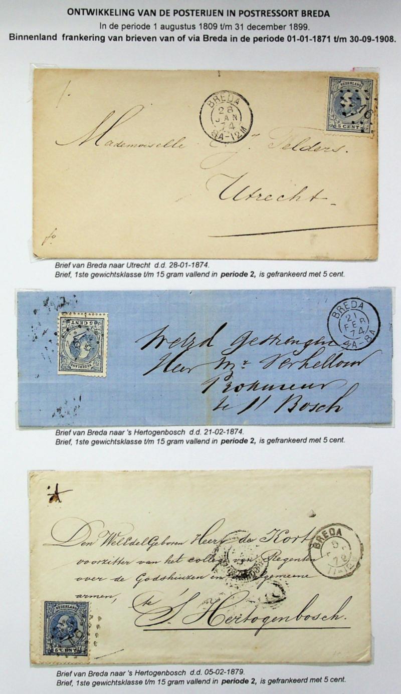 Netherlands 1874-79 3 covers w/ King William III 5cx3 from Breda to Utrecht/ s-Hertogenbosch (Image)