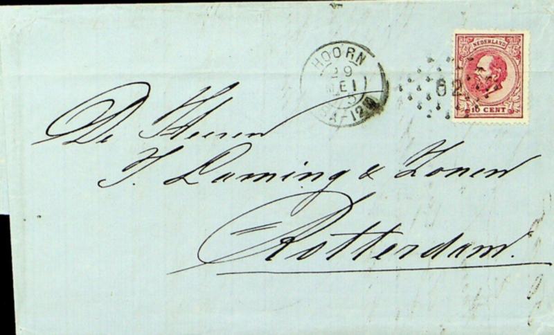 SEPHIL NETHERLANDS 1875 10c ON COVER FROM HOORN TO ROTTERDAM (Image)