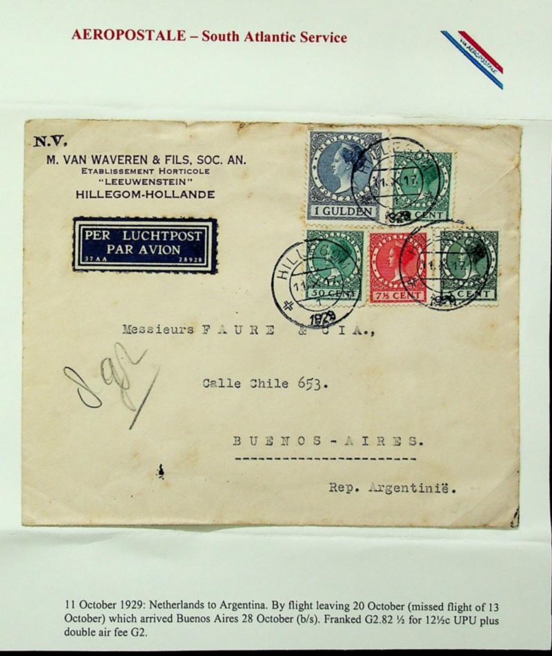 Netherlands 1929 5v on Aeropostale-South Atlantic Service cover from Hillegom to Buenos Aires Argentina (Image)