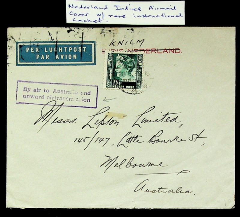 Netherlands Indies 1939 25c on KNILM airmail cover w/ "By air to Australia & onward air transmission" cachet from Batavia via Sydney to Melbourne (Image)
