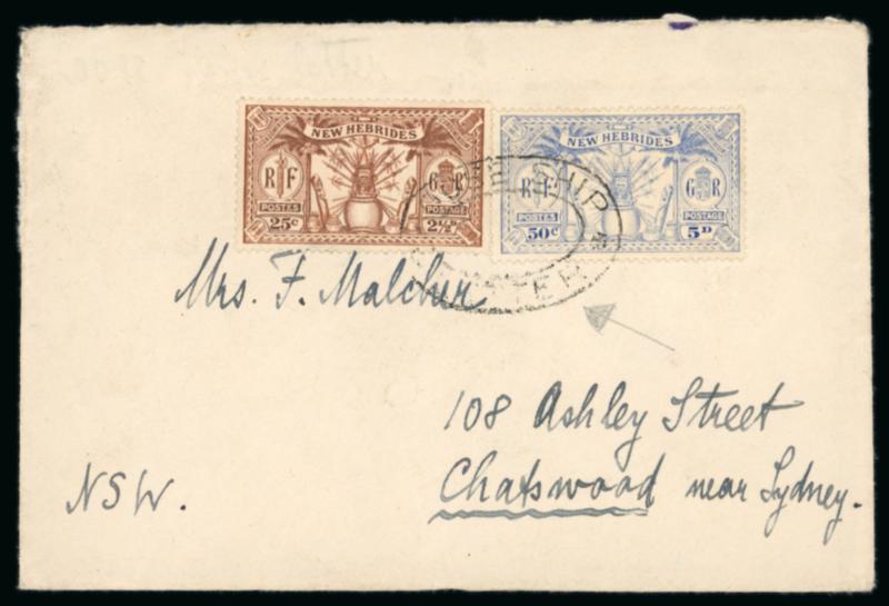 1927 cover with French issue 20c cover to Melbourne, Australia and registered 50c cover to Chatswood, Sydney plus registered front with 75c to Austria and British issue registered 5d cover to Chatswood and further undated cover to same address franked 2 1/2d. and 5d tied by single double oval LOOSE SHIP LETTER handstamp. (Image)
