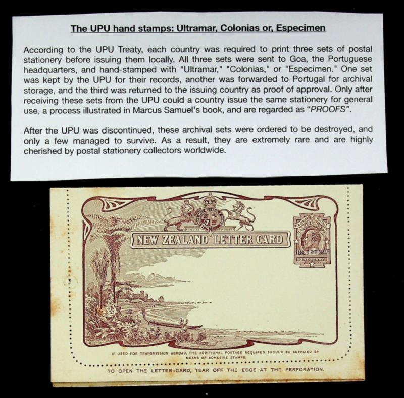 New Zealand KE 1d unused pictorial letter card Proof h/s "ULTRAMAR" by UPU Portuguese Receiving authorities at Goa India (Image)