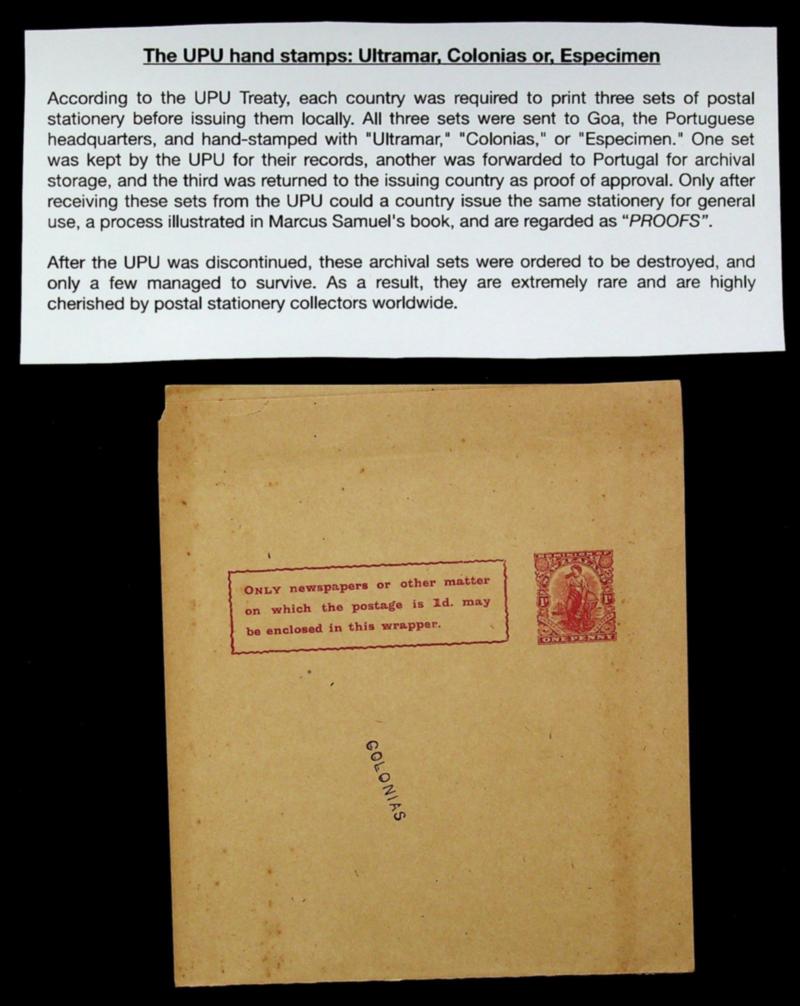 New Zealand 1d unused wrapper Proof h/s "COLONIAS" by UPU Portuguese Receiving authorities at Goa India (Image)